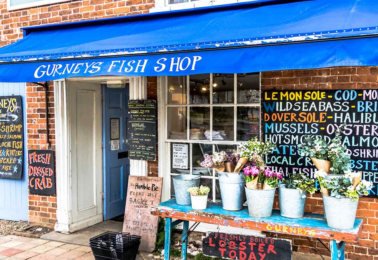 We are the village fishmonger. We specialise in having a large selection of all of the best fish available. With our smokehouse in Thornham, we can offer some of the best smoked fish you’ve ever tasted, and with Brancaster and Wells close by we have shellfish that is of the highest quality possible. In our kitchen here in Burnham we make the fishcakes, pates, and sauces that keep the village going.
